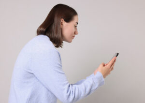 歩きスマホで首が前に出ると猫背が進行